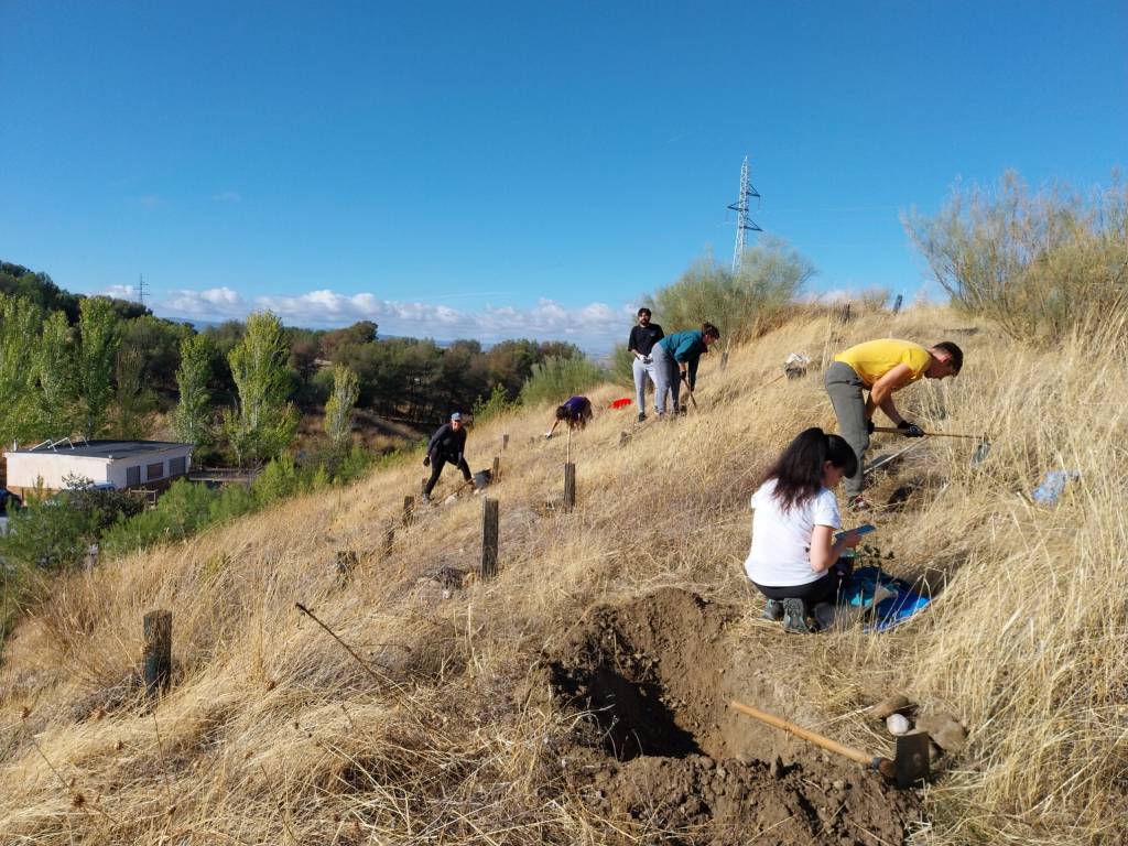 Dos cosas van alcanzando el cielo en la parcela que la Fundación Caja Rural de Granada tiene abierta en el Parque de las Canteras dentro del programa de restauración participativa que estamos desarrollando en la zona.
