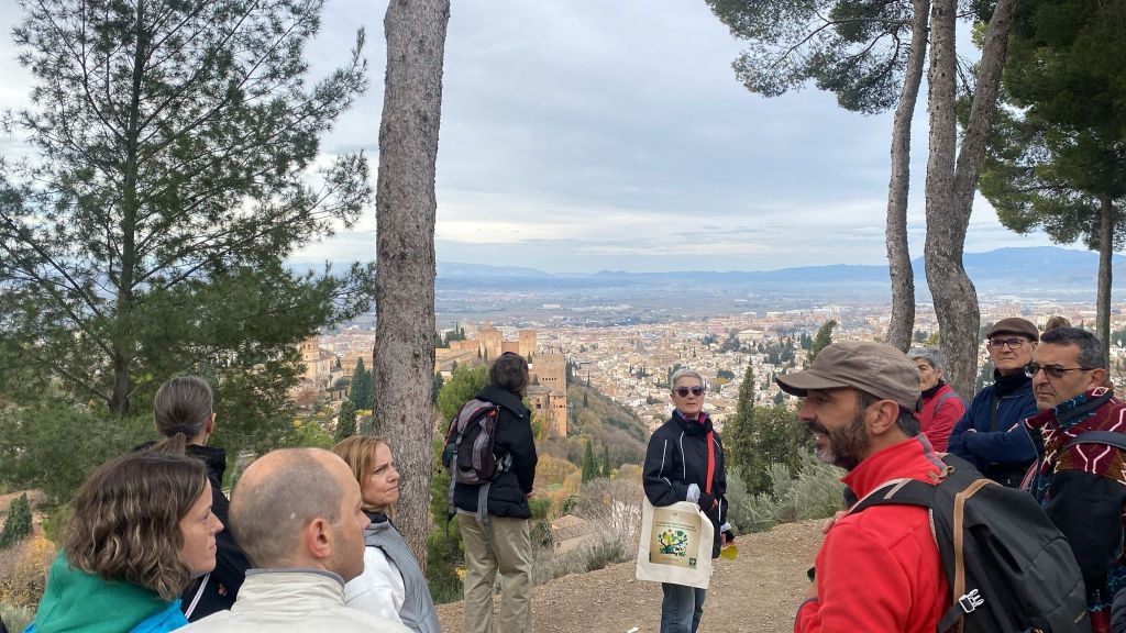 El pasado 13 de diciembre se realizó la última actividad del programa del 2025, ya estamos trabajando para poder ofrecer en unos días la lista de propuestas que queremos realizar en 2026. Ese cierre de temporada fue una visita guiada por Granada que denominamos “Un Rodeo a la Sabika”. Es un recorrido que supone bordear de forma amplia la colina de la Sabika sobre la que se asienta el conjunto monumental de la Alhambra. Lo hemos enfocado como un necesario ejercicio de intentar, en la medida de lo posible y con dificultades, “ignorar” por unas horas ese patrimonio de la humanidad para poder disfrutar otro legado que sobrevive a su “sombra”. Dicen que debajo de una farola no se ven las estrellas pues su potente luz impide ver esos pequeños y tenues puntitos de luz que representan las estrellas. Pero el valor de esas lucecitas humildes son su abundancia, su diversidad y su singularidad. Terminando la metáfora, el patrimonio de la ciudad de Granada transciende el inconmensurable legado de la ciudad palatina y su almunia, tenemos una gran cantidad pequeñas estructuras hidráulicas (pozos, acequias, albercas, etc.), palacios y castillos ocultos y/o en ruinas, bosques, valles y paisajes hermosos y cercanos… y mucho, mucho más. Tenemos que disfrutar y conservar todo ese humilde e ignorado patrimonio y el primer paso es visitarlo. Y para eso este itinerario (y muchos otros que ofrecemos) para poner en valor ese “otro” patrimonio natural, cultural e histórico.