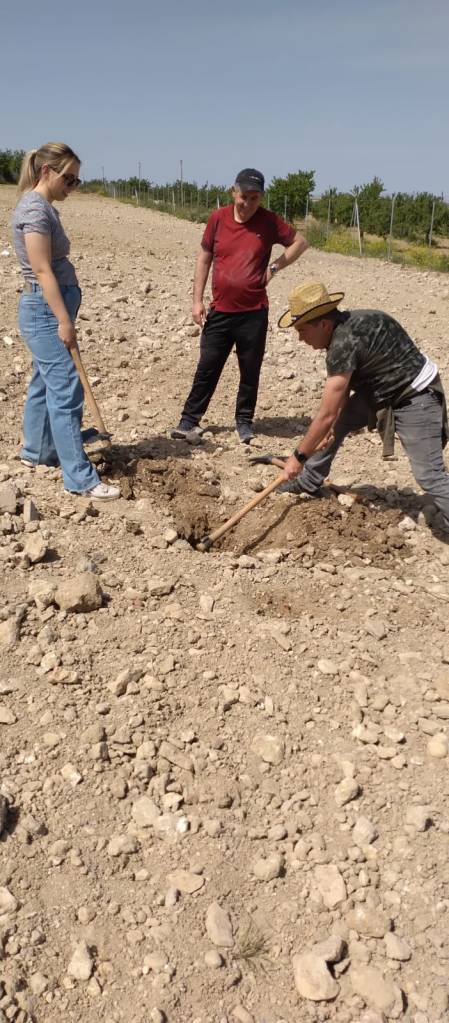 Ya se ha empezado preparando el terreno (retirada de escombros y residuos, vallado y cercado perimetral, arado, hecho acopio de materiales, creado un punto de agua, corregido la pendiente, etc.), se ha hecho la presentación general del proyecto a la población local con su pequeña intervención ambiental, y también este pasado otoño se realizaron las primeras intervenciones con el centro educativo del municipio.